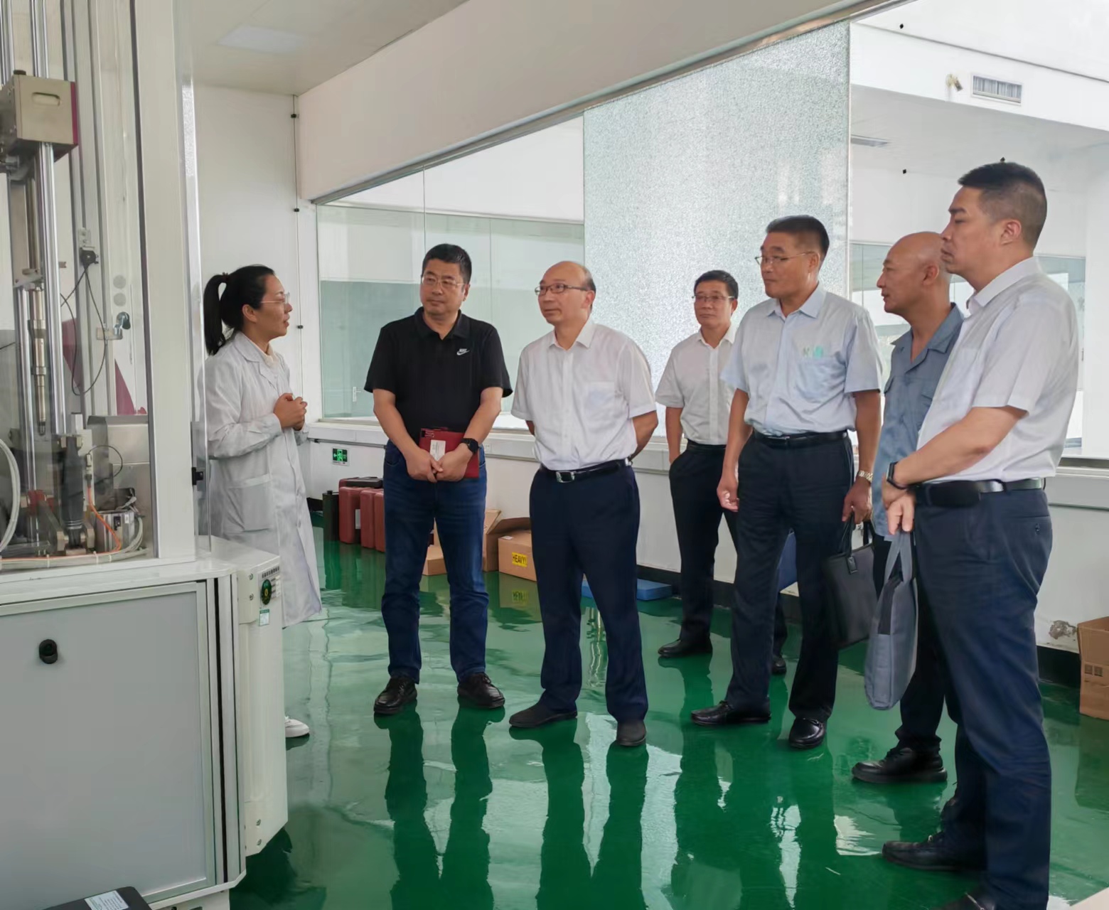 9月5日,荣耀手机官网入口公司党委书记、董事长丁锐,副总经理王士华、刘承志等一行到纤维新材料研究院调研。