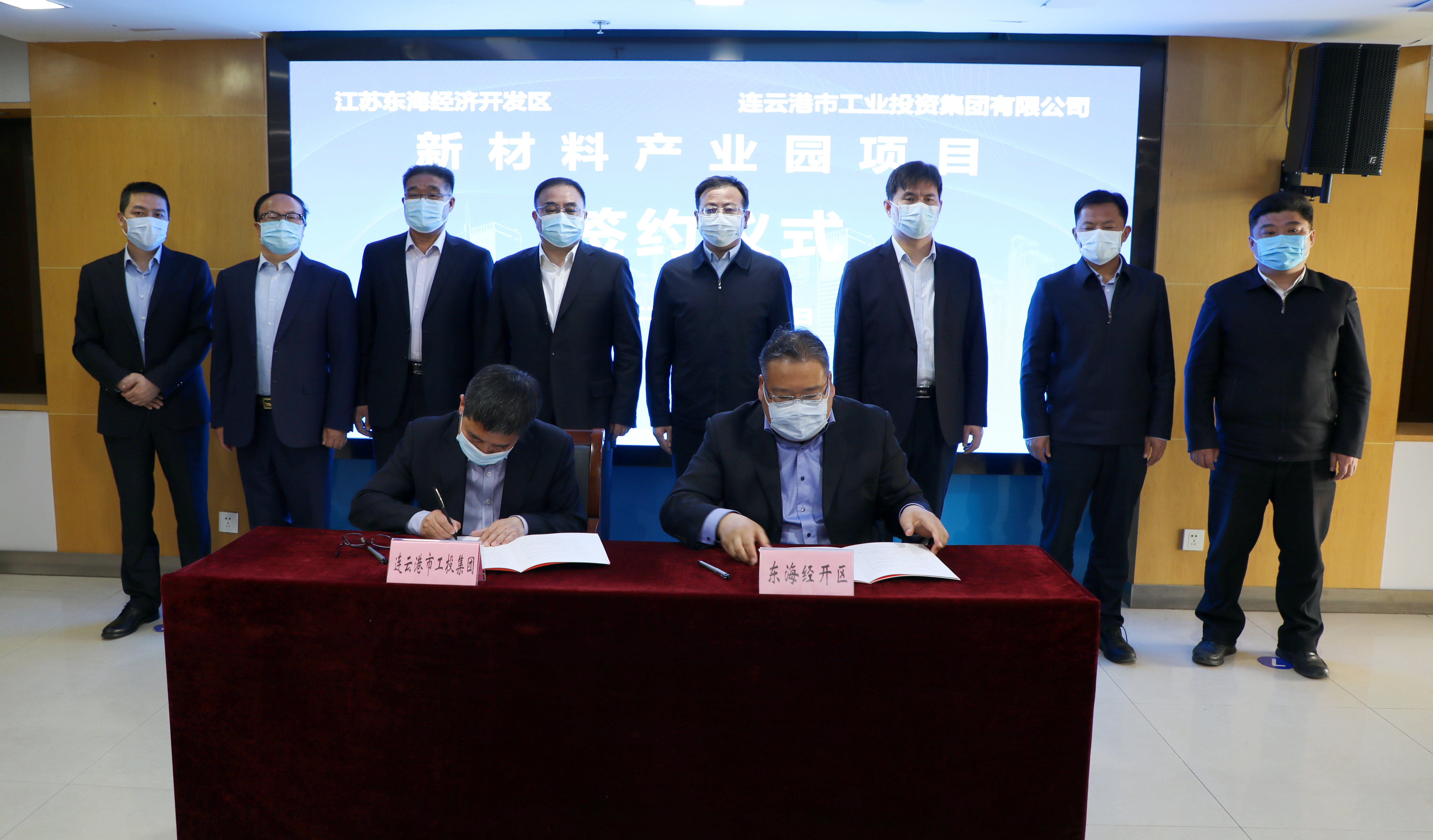 4月21日上午,荣耀手机官网入口公司与东海经济开发区在东海县政府举行新材料产业园项目签约仪式。副市长、东海县委书记宋波,县长张其兵、常务副县长欧伟、县委常委刘峰,荣耀手机官网入口公司党委书记、董事长杨龙,常务副总经理杨国新、副总经理刘承志出席签约仪式。