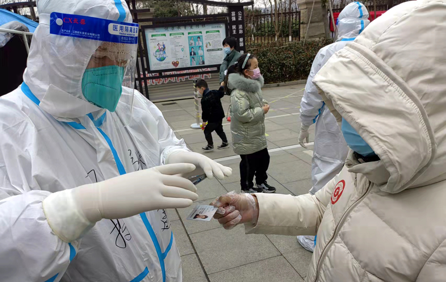 “你好!我是文昌社区志愿者。”一遍遍地重复着同样话语,敲开一扇扇门,为了摸清底数,掌握实情,精准施策,支部党员志愿者挨家挨户上门登记。青年党员刘林回忆,电梯停开,一次一口气跑上8楼后,还没有来得及敲门,发现戴着N95口罩根本无法大口喘气,一阵窒息感随之而来,至今难忘;来自一线的党员杨加军,是一名退伍军人,凭借着在部队刻苦磨砺出来的认真劲儿,硬是穿着“大白”连续工作17个小时,滴水未进,完成采集核酸登记检测人员信息1200人,防护服内下着“小雨”,双手被汗水浸得发白,脸上被口罩勒出深深的沟痕。当“大白”很苦,但每当他们看到胸前党员徽章时,总会想:“我是党员,关键时刻,就要冲得出、顶得上。”