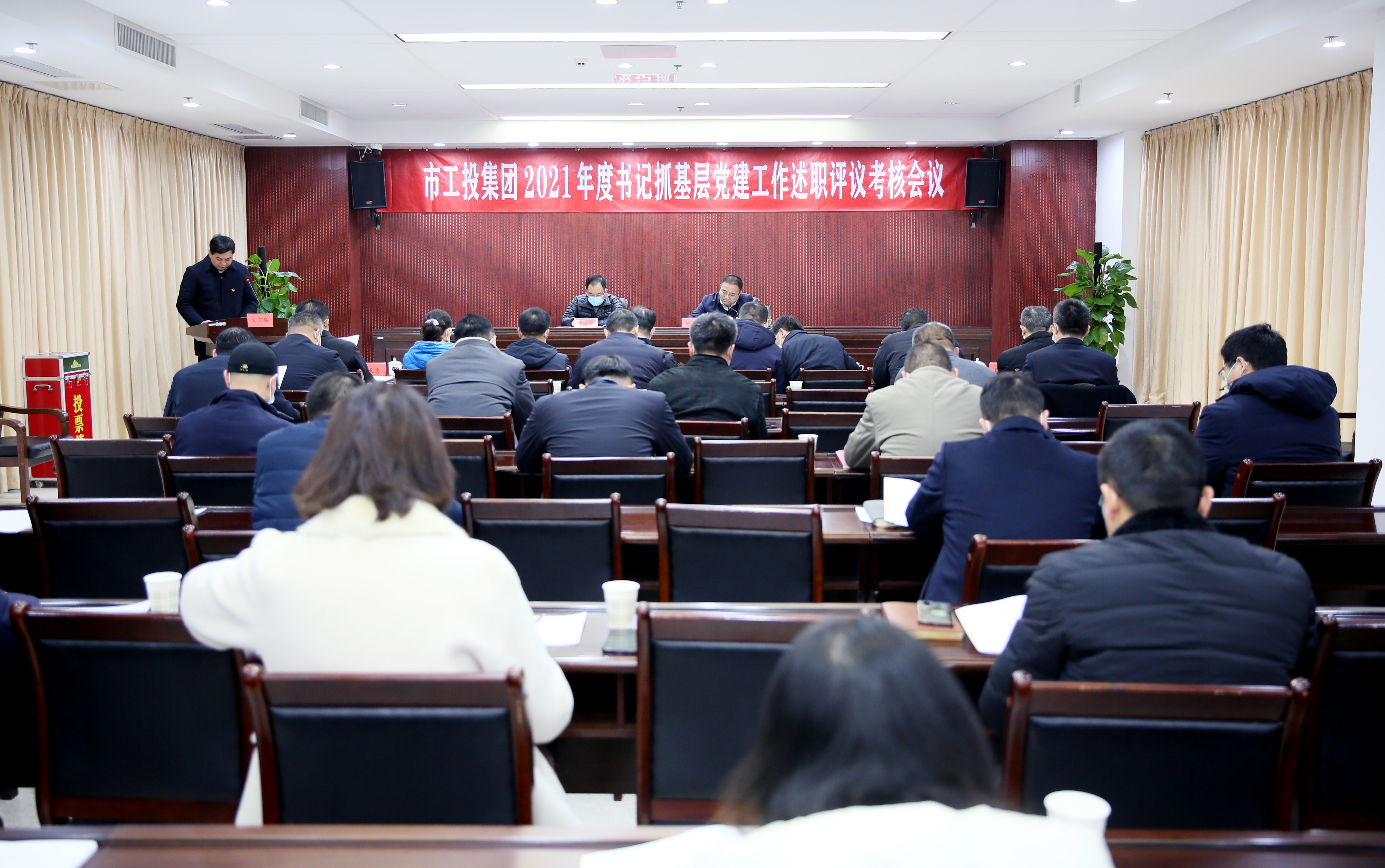12月30日,荣耀手机官网入口公司党委召开2021年度书记抓基层党建工作述职评议考核会议,市国资委党委委员、副主任李君儒到会指导。荣耀手机官网入口公司党委书记、董事长杨龙主持会议。荣耀手机官网入口公司党委领导班子成员、各直属单位党组织主要负责人、荣耀手机官网入口总部相关部门负责人、各级各类党代表、基层党员代表参加会议。