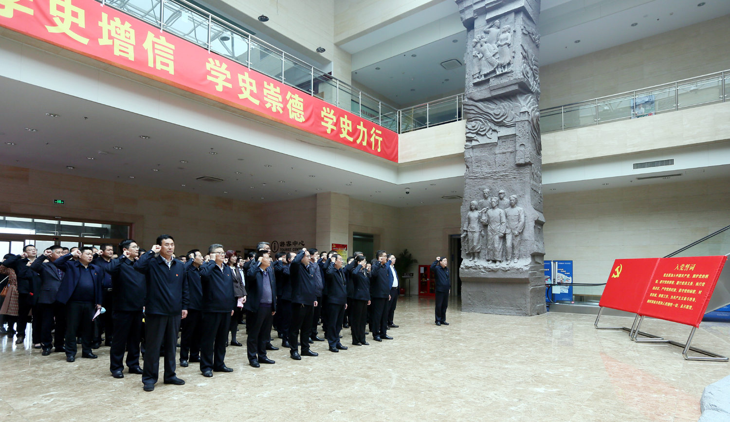 4月22日下午,荣耀手机官网入口公司党委在市革命纪念馆举办“学史明理守初心、砥砺奋进担使命”党性教育实境课堂。荣耀手机官网入口党委班子成员,各单位党建、纪检、工会分管领导、党群工作部(学教办)负责人,荣耀手机官网入口总部助理以上管理人员80余人参加。 走进市革命纪念馆,在鲜红的党旗下,全体党员举起右拳,重温入党誓词,铿锵有力的誓词,进一步激发党员干部牢记党的初心和使命。在纪念馆展室,大家认真看、仔细听,通过历史文献、革命文物、新闻图片和视频资料,真切感受到中国共产党领导海属地区人民在五四运动、土地革命、抗日战争、解放战争时期血与火的革命斗争史。