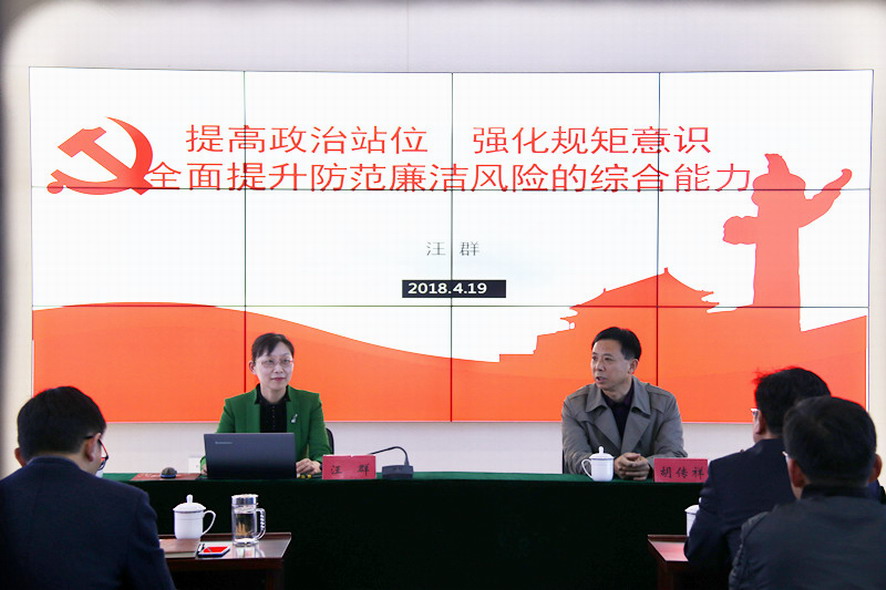 为进一步深入学习贯彻党的十九大会议精神,强化正风肃纪,不断巩固拓展落实中央八项规定精神成果,4月19日下午,荣耀手机官网入口公司纪委书记汪群在资产管理公司上了一堂《提高政治站位,强化规矩意识,全面提升防范廉洁风险的综合能力》廉政党课,该公司50多名干部职工聆听了党课。