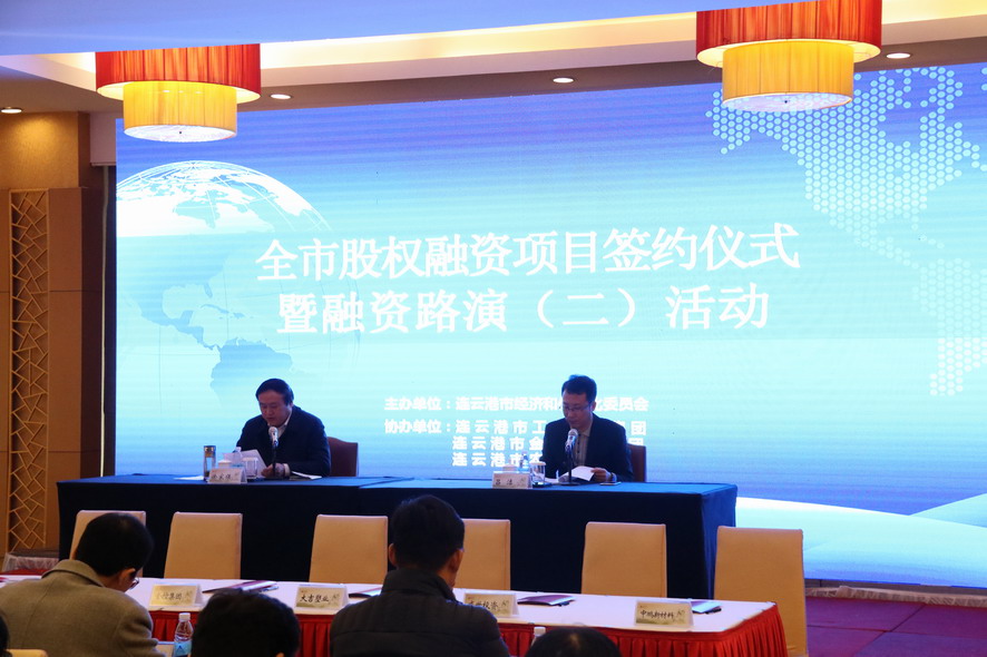 11月23日上午,由市经信委主办,工投荣耀手机官网入口等单位承办的“全市股权融资项目签约仪式暨融资路演第二轮活动”在云台宾馆会议厅举行。市政府副市长徐家保,市经信委主任吕洁,荣耀手机官网入口公司董事长、党委书记杨龙,副总经理杨国新,金控荣耀手机官网入口、农发荣耀手机官网入口、盛世金财等投资机构及部分民营企业家代表参加会议。
