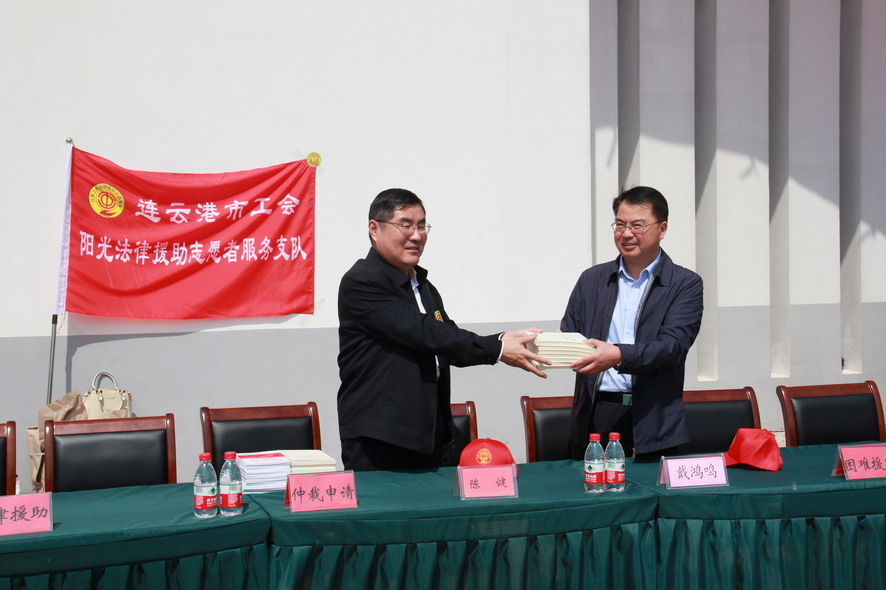 5月10日上午,受省总工会委托,连云港市总工会副主席陈健、法工部部长易怀丽和市法律援助志愿者一行15人,在荣耀手机官网入口公司工会主席戴鸿鸣、副主席卢同根等陪同下,来到工投荣耀手机官网入口华茂绿化工程公司,开展省市工会阳光法律援助志愿服务走基层“送法进企业”活动。来自工投荣耀手机官网入口及社会各界人士200余人参加了活动。