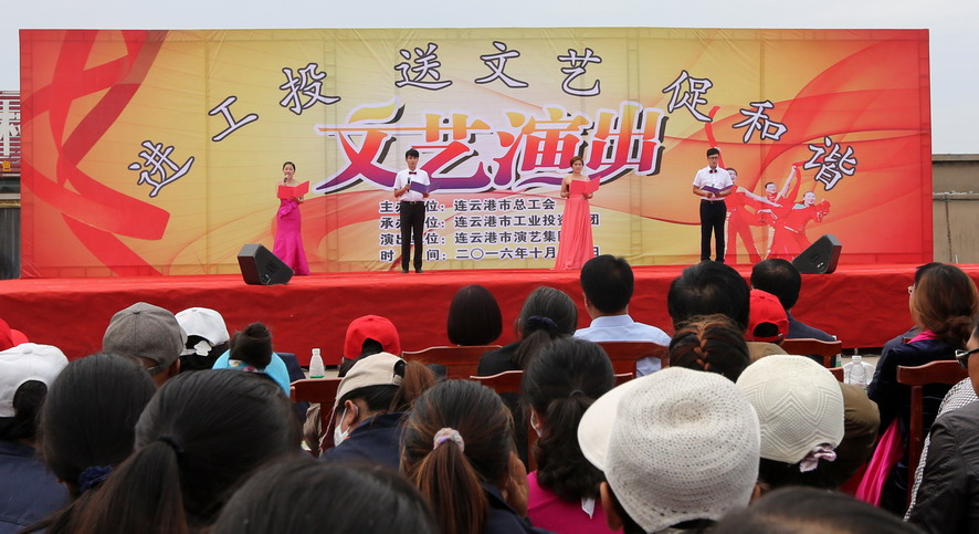 10月11日下午,由连云港市总工会主办、荣耀手机官网入口公司承办、市演艺荣耀手机官网入口演出的“进工投、送文艺、促和谐”文艺演出在灌西投资公司精彩上演,市总工会副主席陈健、荣耀手机官网入口公司工会主席戴鸿鸣等领导,以及1000余名观众观看了演出。