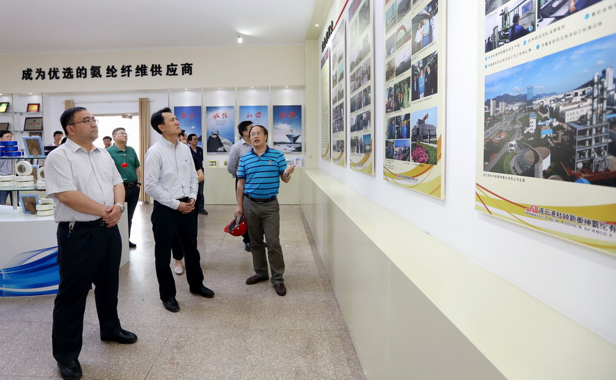双方围绕未来盐及盐化工产业、高性能纤维产业发展趋势和应对食盐市场放开等方面进行了深入细致的探讨交流,伏运景副总经理介绍了井神公司上市以后的发展情况,对我公司致力于建设化工产业园、高性能纤维产业园、精品盐产业园、高端装备制造产业园等专业性产业园为核心的产业体系的发展愿景给予了充分肯定。一致期望通过此次会见,为今后友好往来、交流沟通搭建平台,共同开拓广阔的合作空间,谋求共赢,携手共进。杨龙董事长还陪同井神客人参观了氨纶公司产品展示室和生产车间等处。