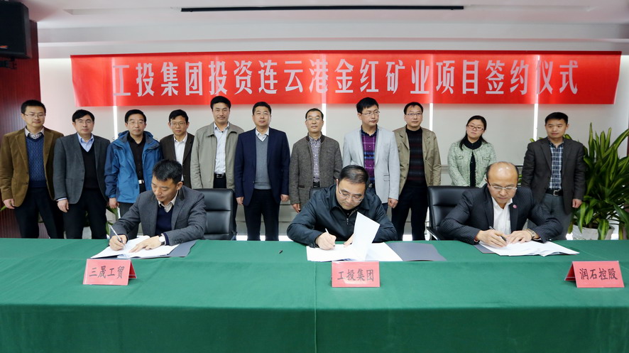3月30日上午,荣耀手机官网入口公司与浙江润石控股公司、东海三晟工贸公司签订连云港金红矿业项目增资扩股协议,荣耀手机官网入口公司董事长、党委书记杨龙,总经理胡建明、副总经理王士华、总经济师陈如军,连云港金红矿业有限公司股东润石控股荣耀手机官网入口董事长陈海彬、三晟工贸公司董事长许向阳等出席签约仪式。