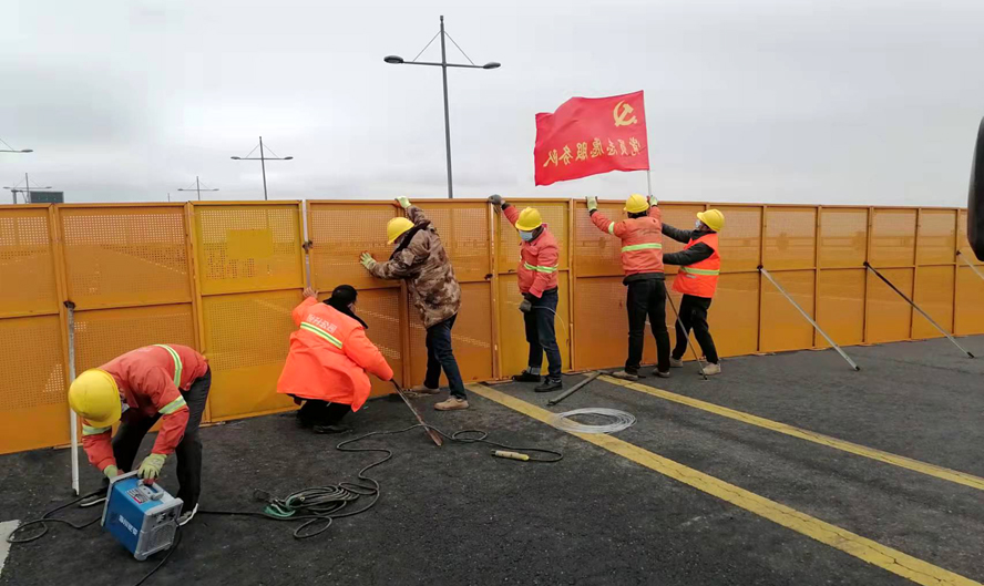 安装加固步步到位。“今天市政在岗9人。”17号一大早,市政经理高峰就准时在公司防疫管理群里报告人数。可是此时这岗位却设在狂风凌洌、无遮无挡的海滨大道上。肆虐的狂风吹倒了许多防护栏,从清晨开始,高峰就带领市政突击队沿着合作路、海滨大道等八个路段一路巡查一路抢修。面对狼藉的现场,高峰沉着冷静,有条不紊地带着大家用力地扶起扶正,再加桩固定。施工现场,风声伴着加油的号声、汗水伴着有节奏地敲击声,这场景,不正是一幅感人的“铮铮铁骨铸坚壁”的动人画卷吗?自35日疫情袭来,市政突击队就马不停蹄地奋战在新区的各个角落。施工期间,高峰他们白天黑夜地连轴转,中午来不及休息便蹲在路边吃快餐,为了抢工期,有时竟加班到深夜12点。短短的10天,他们在做好其他市政服务工作的同时,已经先后安装完成了2000多米的道路围挡,让病疫“无路可逃”。