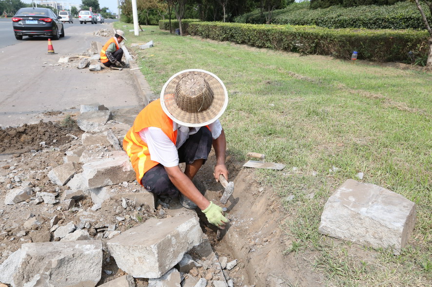 位于连云港东站附近的新光路,是开发区境内的一条主要运输道路,经常有重型卡车经过,每天川流不息的车辆不仅给道路增加了运载负荷,也使得道路两旁的路牙石、人行道砖等受碾压、撞击、剐蹭等因素影响,破损非常严重。为了加快工程进度,降低人工成本,工程项目部在该路段采取机械施工的方式,很大程度上的提高了项目进度。在项目开展过程中,工程项目部的人员也遇到了许多的困难,新光路由于地处火车站附近,平常车流量大,在施工过程中要注意对来往车辆进行避让;另外,由于该路段临近新光小区、澜庭观邸等住宅区,早晚上下班的居民也限制了施工时间短。虽然面临种种困难,盛达市政公司的施工人员没有埋怨,而是想方设法去克服。自824日开工以来,截止目前,总长近6000米路段内的路牙石以及人行道砖的清理工作已经全部完成,下阶段,工程项目部还将安排人员进行新路牙石与人行道砖的更换工作,并将开展附近其他道路的修复工作,确保将“创卫”工作的开展落实到实处