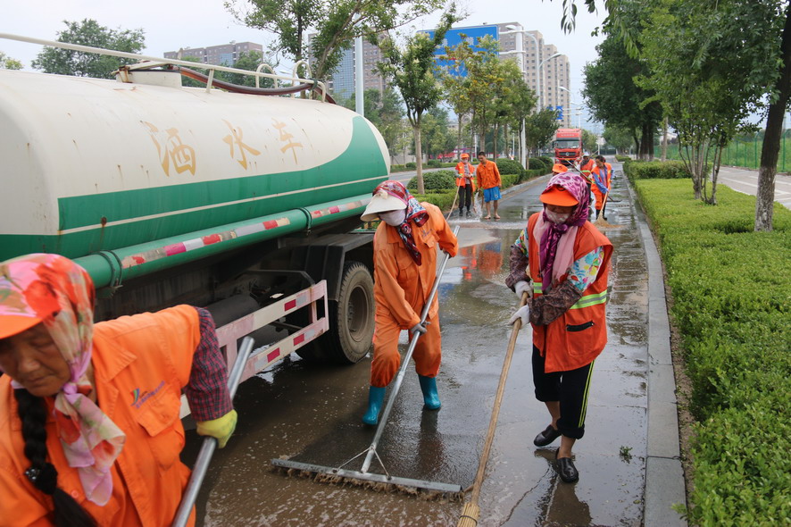 8月19日在火车站广场及周边路段,40多名绿化、保洁工人及洒水车、清扫车等全力保障火车站重点地段的环境卫生,为过往旅客提供一个干净整洁舒心的出行环境。据现场负责人龚本国介绍,随着创卫工作力度的进一步加大,开发区对我们火车站广场及周边路段的环境卫生提出了更高的要求,我们对会泉路商户门前的绿化进行了补植,种植红叶石楠等苗木600多平方,每天专门安排一辆洒水车对火车站广场及周边路段进行巡回清洗清扫,确保路面干净无尘土,对广场站台、护栏、果皮箱、路灯杆、花坛进行清理擦洗,对下水道进行清掏,盖板更换维修。为确保创卫工作任务高标准高质量完成,连日来,绿化养护、环卫保洁工人天天早上6点上班,到晚上10点下班,中午吃饭休息只有一个小时,每天工作10多个小时,为创卫工作做了很多实实在在的事情,他们真的很不易,很辛苦,只因有了他们的辛勤劳动、无私奉献,城市环境卫生才会越来越好。