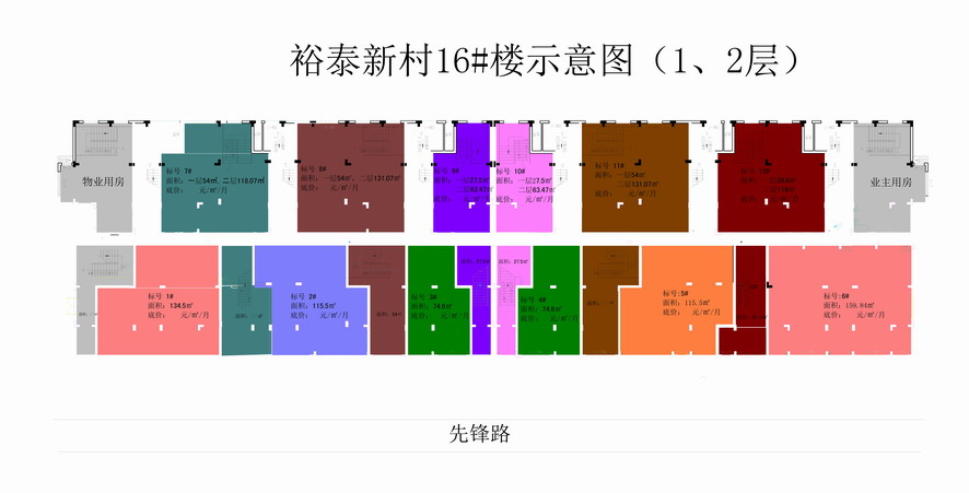 出租裕泰新村16#楼1、2层房屋,建筑面积约为1762.78平方米。其中1层建筑面积为995.66平方米,设有6个标段(标号1#-6#);1-2层建筑面积767.12平方米,设有6个标段(标号7#-12#),共计12个标段(见附件4)。意向报名人可在招租公告发布5日内前往进行实地考察。