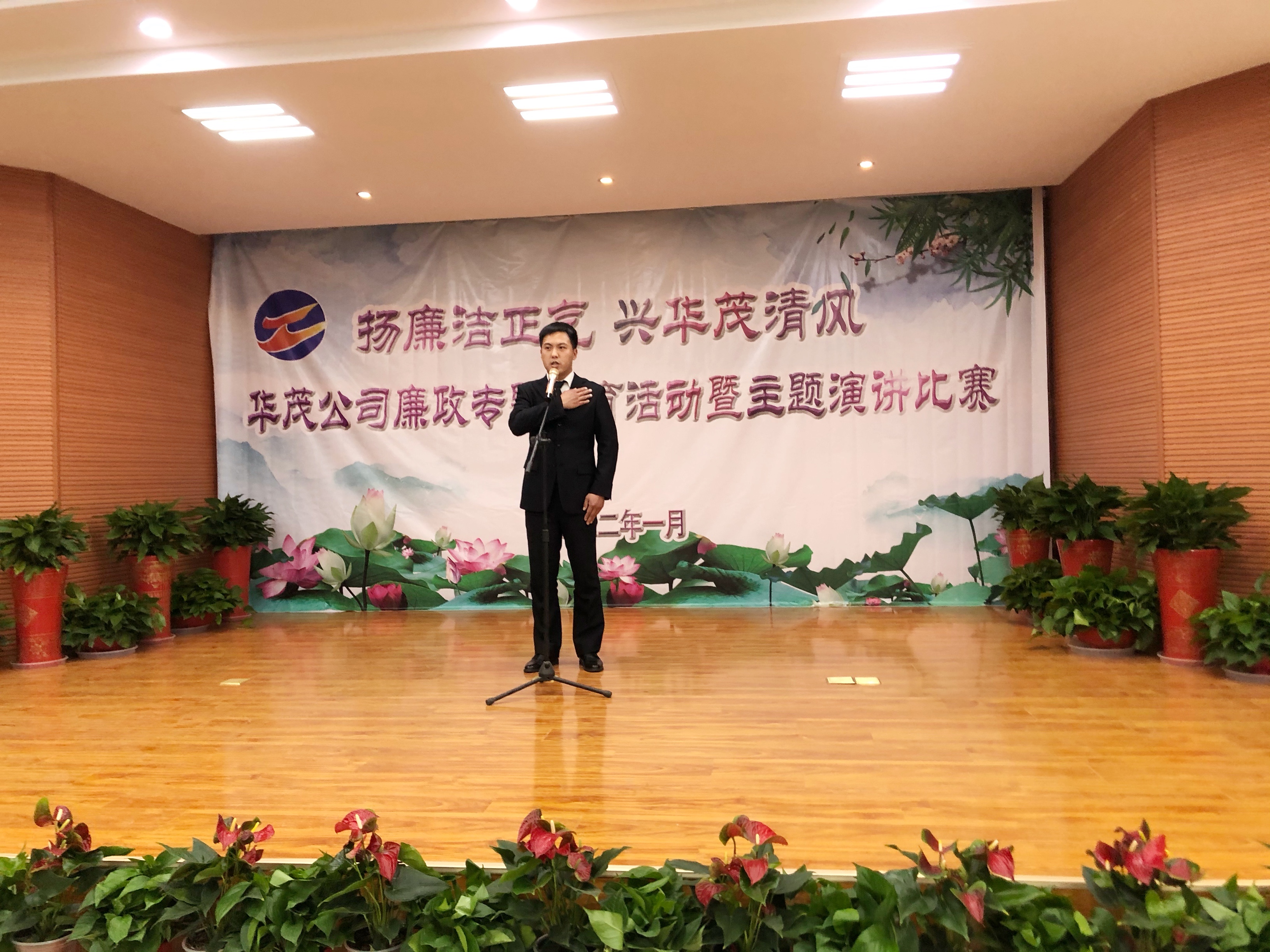 此次演讲比赛也是华茂公司节前廉政教育专项活动之一,比赛前,还组织党员干部观看了警示教育片《远离家庭腐败》。(陈炳辰)