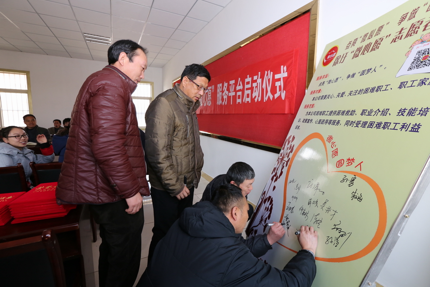 3月6日下午,徐圩工会举办徐圩投资公司职工“微心愿”服务平台启动仪式,各基层分会主席、部分女工主任参加此次活动。仪式上,工会副主席吴井才宣读了《徐圩投资公司职工“微心愿”服务平台工作章程(暂行)》;工会主席庄清付带头加入了服务平台志愿者并在招募图板上签字;最后,他与参会人员分享了自己从事工会工作的几点感悟。他提出工会人要把被动履职转变为主动担当,做职工群众有心人;要“能、敢、善于”为职工说话,做职工群众知心人;要做好事、办实事、解难事,做职工群众暖心人;要尽心、尽力、尽责,做职工群众贴心人。