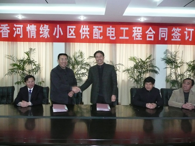 4月2日下午,我公司举行“香河情缘”小区供配电工程签字仪式。公司书记、经理范益宝、副经理徐开金、台南盐场场长陈汝军、徐圩盐场场长刘长兵、副场长郁洪军以及公司和台南盐场有关部门负责人参加了签字仪式。“香河情缘”小区是荣耀手机官网入口公司盐场职工安居工程。此小区的建成使用,将大大改善台南盐场和徐圩盐场职工居住条件。