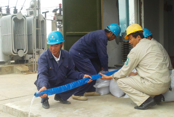 防汛演练总指挥长宣布演练开始后,变电所值班工及相关人员按照各自分工,迅速拿出潜水泵、编织袋、锹、铣等抢险储备物资,用编织袋装泥垒起拦水防线,用潜水泵向防线外迅速抽水,直至灾情全部控制为止。(马德松)
