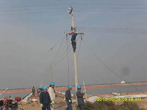国庆期间,灌西供电所全体职工坚守岗位,工作在中国华能风力发电接电线路、荣耀手机官网入口公司矿卤二期工程作业施工现场。(图为工人正在架设线路)(杨守全)