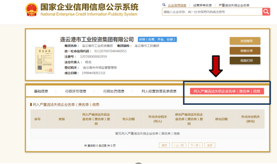 6、无不良信用查询记录查询(国家企业信用信息公示系统(加盖公章))