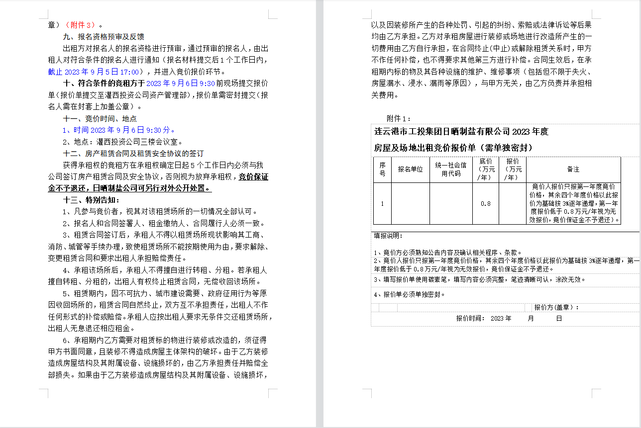 连云港市工投荣耀手机官网入口日晒制盐有限公司 房屋及场地对外公开招租公告