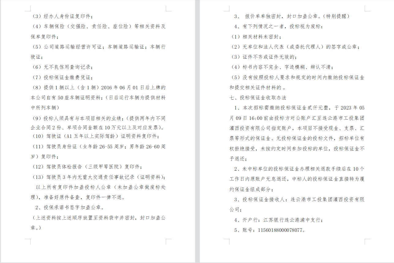 连云港市工投荣耀手机官网入口灌西投资有限公司 员工上下班通勤车辆租赁项目二次招标公告
