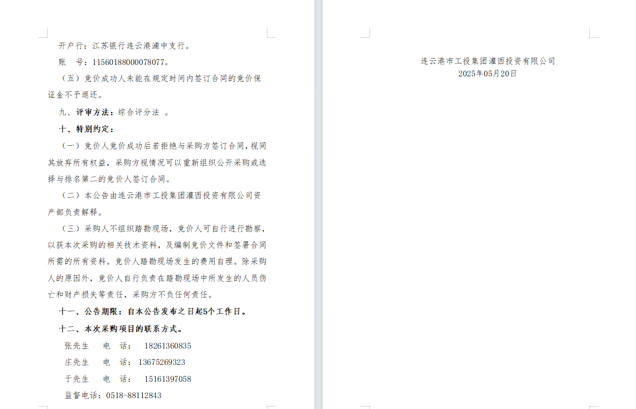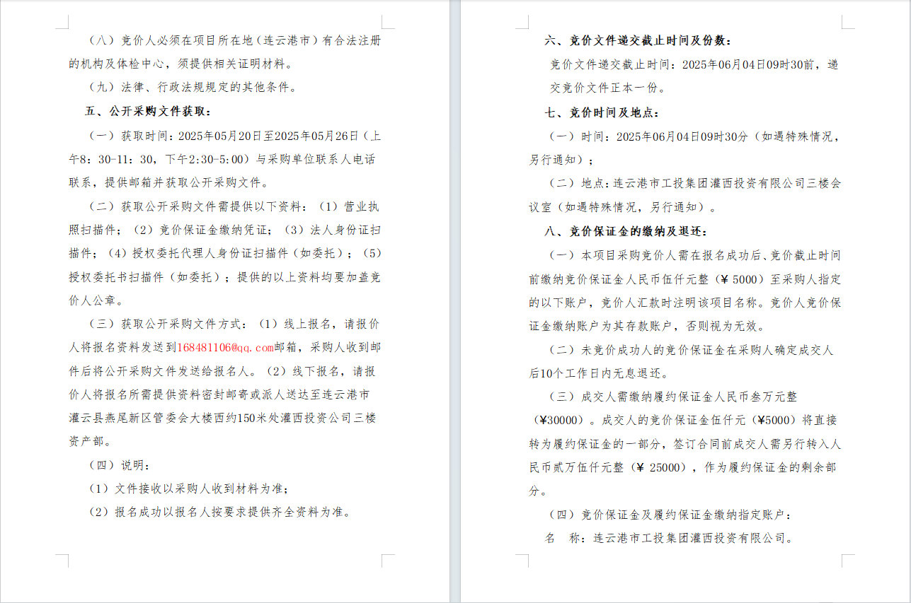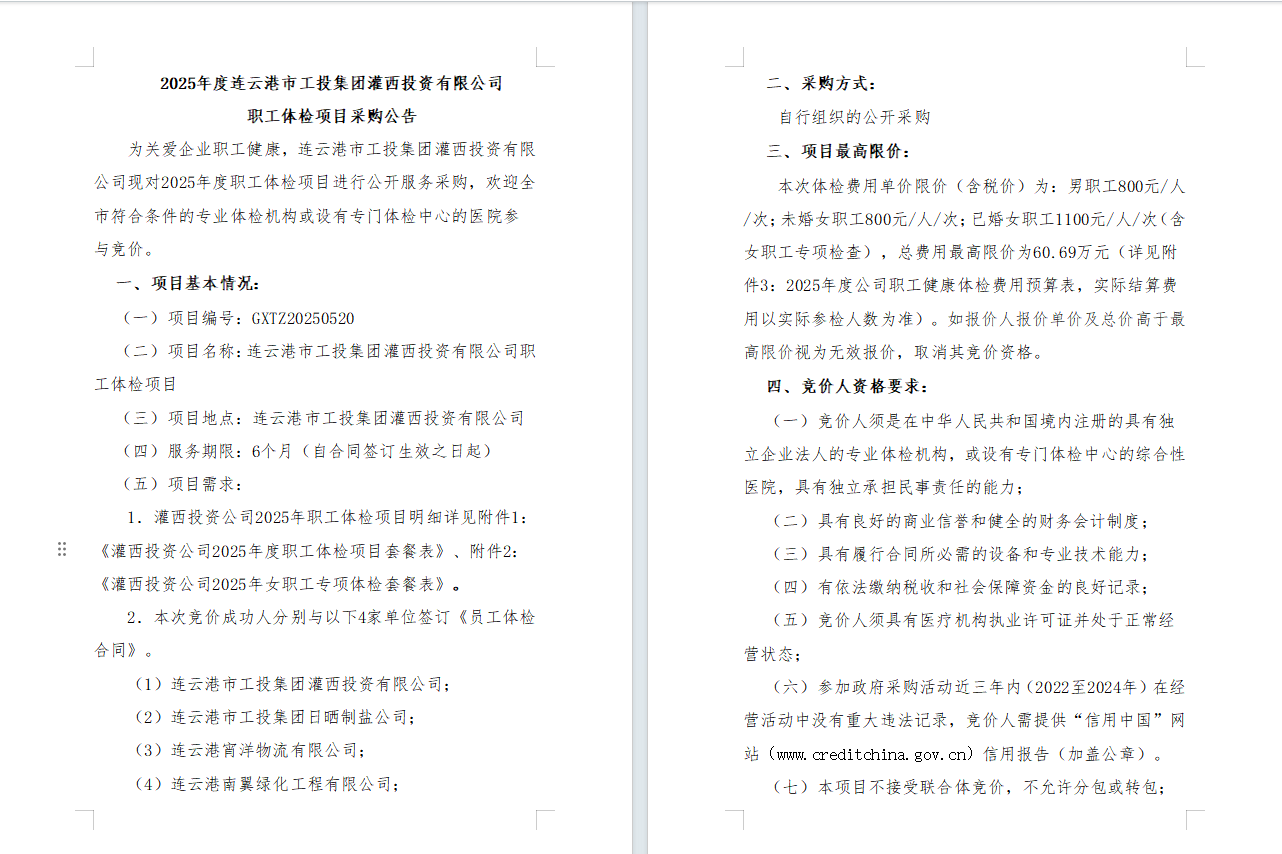 2025年度连云港市工投荣耀手机官网入口灌西投资有限公司职工体检项目采购公告