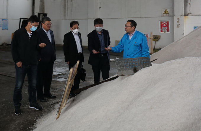 贾庆伟、陈长锋一行先后参观了我公司加工盐车间和包装盐车间,了解了我公司海盐产品的原料盐库、生产工艺和生产设备。随后,座谈了解了我公司盐业体制改革后的生产经营情况,并就党建活动开展情况进行了交流。(金宣)