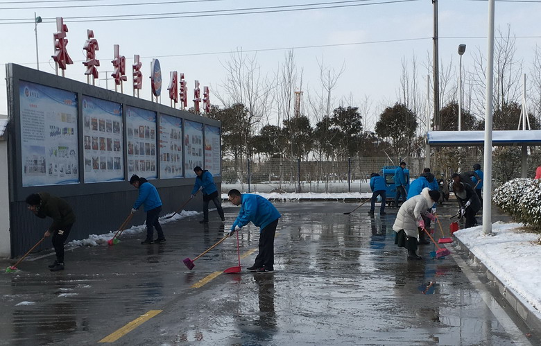 1月31日上午,我公司组织党团志愿服务队开展义务奉献活动,清除厂区道路积雪。经过近2小时的奋战,将公司的入口、主干道等处的积雪全部铲除,为车辆、员工和来访客人出入开辟了一条安全整洁的道路。(金宣)