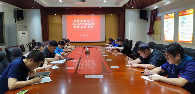 比“胸有成竹”。本次营销知识竞赛试题类型包括选择题、填空题和简答题,内容涵盖公司经营相关制度、企业文化、商务礼仪等。通过竞赛,达到“以赛促学”的目的,提高了销售人员的营销理论知识素养。(金工)