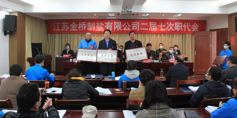 大会签订了《2020年度集体合同》、《2020年度经营认标责任书》,与会代表认真审议通过了总经理工作报告,通过了大会决议、有关方案和意见。加工盐车间、包装盐车间、销售部依次作了表态发言。大会表彰了第八届“金桥杯”劳动竞赛、2019年“大干四季度”劳动竞赛的先进单位、先进部室、先进班组和先进个人。(金宣)