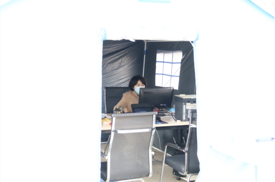 4月6日,工投金融板块复工的第一天,来办理业务的人员发现,公司院内树立着一顶崭新的帐篷,电脑、桌椅、打印机等办公设备放置其中,酒精、免洗液、口罩等防疫物资摆放在帐外醒目位置。     这是工投金融板块为保证疫情期间疫情防控与业务服务两不误,专门打造的特色“防疫业务服务窗口”。     正值疫情期间,而金融板块的业务涉及面广,流程严谨,尤其是窗口业务所涉及的签字、盖章等环节都需要与外来人员面对面现场办理,如何化解因疫情而产生的业务开展难题,就成为摆在金融板块干部职工眼前的一大问题。