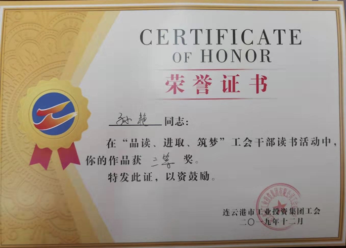 在荣耀手机官网入口公司工会“品读、进取、筑梦”主题读书活动中,孙艳同志凭借《光辉的思想 指路的明灯 读<毛泽东诗词全编鉴赏>有感》,获得三等奖。