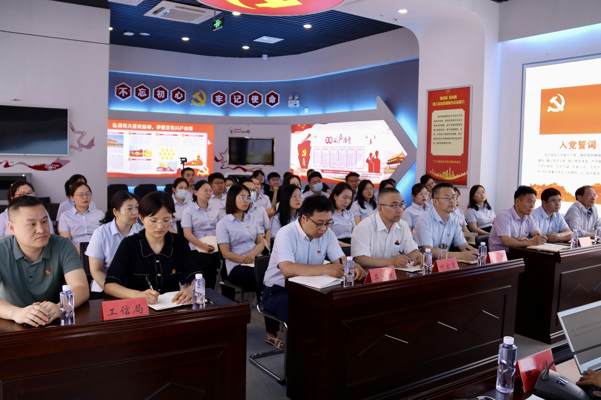 为庆祝中国共产党成立102周年,进一步贯彻落实党的二十大报告中关于扶持中小微企业和实体经济的重要论述,增强业务能力。6月29日下午,格斯达党支部联合江苏信保荣耀手机官网入口连云港分公司党支部、市工信局第三党支部开展联学共建主题党日活动,活动邀请人行连云港中心支行货币信贷科主要负责人做讲座,深入学习习近平总书记关于金融发展的重要论述。依据2023年宏观经济与金融形势分析报告,从供给、需求和预期层面选择若干指标客观分析了疫情三年我国经济情况,分析下一阶段货币政策思路。三个支部共40余名党员、员工参加活动。