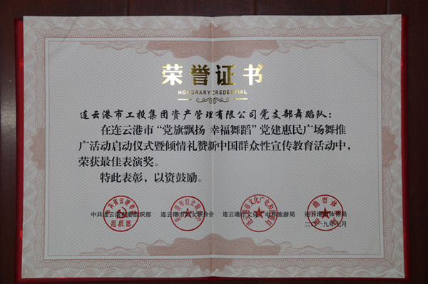 7月16日,连云港市“党旗飘扬幸福舞蹈”党建惠民广场舞推广活动启动仪式暨群众性宣传教育活动在市文化艺术中心举行。启动仪式上,来自工投荣耀手机官网入口资产管理公司舞蹈队登台展演,荣获市委组织部、市妇联、市文广旅局、市体育局联合颁发的“最佳表演奖”。 为了参加这次活动,公司舞蹈队12名队员进行了近一个月的辛苦排练。队员们在表演中动作精准,以零失误完成各个动作,获得观众热烈掌声和高度评赞。此次登台演出,充分展示了工投荣耀手机官网入口职工的精神面貌和公司舞蹈队广场舞的扎实基础。 (资产管理公司宣) |
