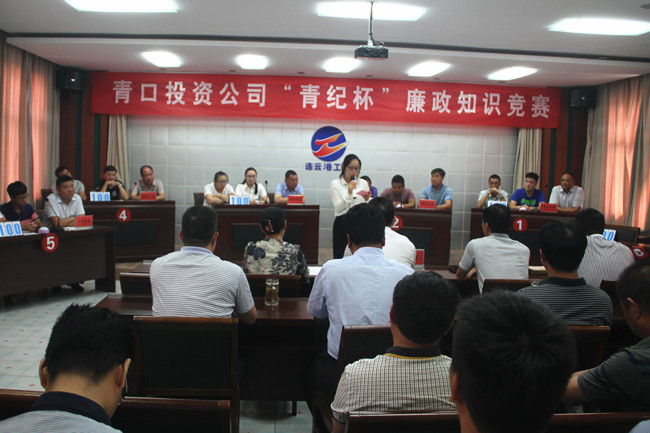 8月28日下午,一场别开生面的“青纪杯”廉政知识竞赛在青口公司举行。公司领导班子亲临现场为选手们加油鼓劲,各部室负责人及来自公司各单位、部门的60余名职工到场观看了整场比赛。赛前,由党委书记胡传法带头,全体在岗党员在廉政誓词上进行签名。