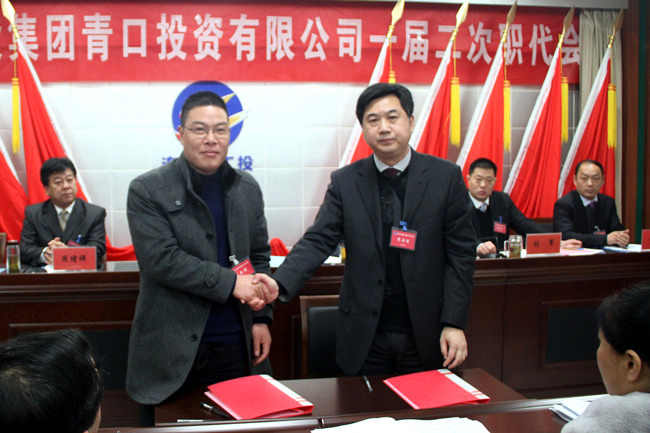 2月8日上午,青口投资公司隆重召开一届二次职工代表大会。来自公司各条战线的56名职工代表齐聚一堂,共商企业发展。公司董事长、总经理胡传法作《工作报告》。大会由党委副书记、工会主席史祥平主持。