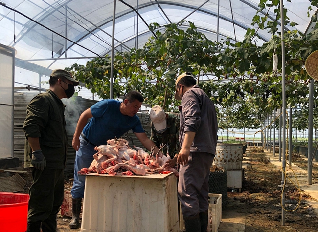 中秋节马上来临,生态种养中心也迎来了销售高峰期,特禽销售火爆进行中。为更好的服务客户,中心还提供宰杀、清理、包装等服务,因订单量大,职工们加班加点齐心协力做好节前销售工作。(严鑫)