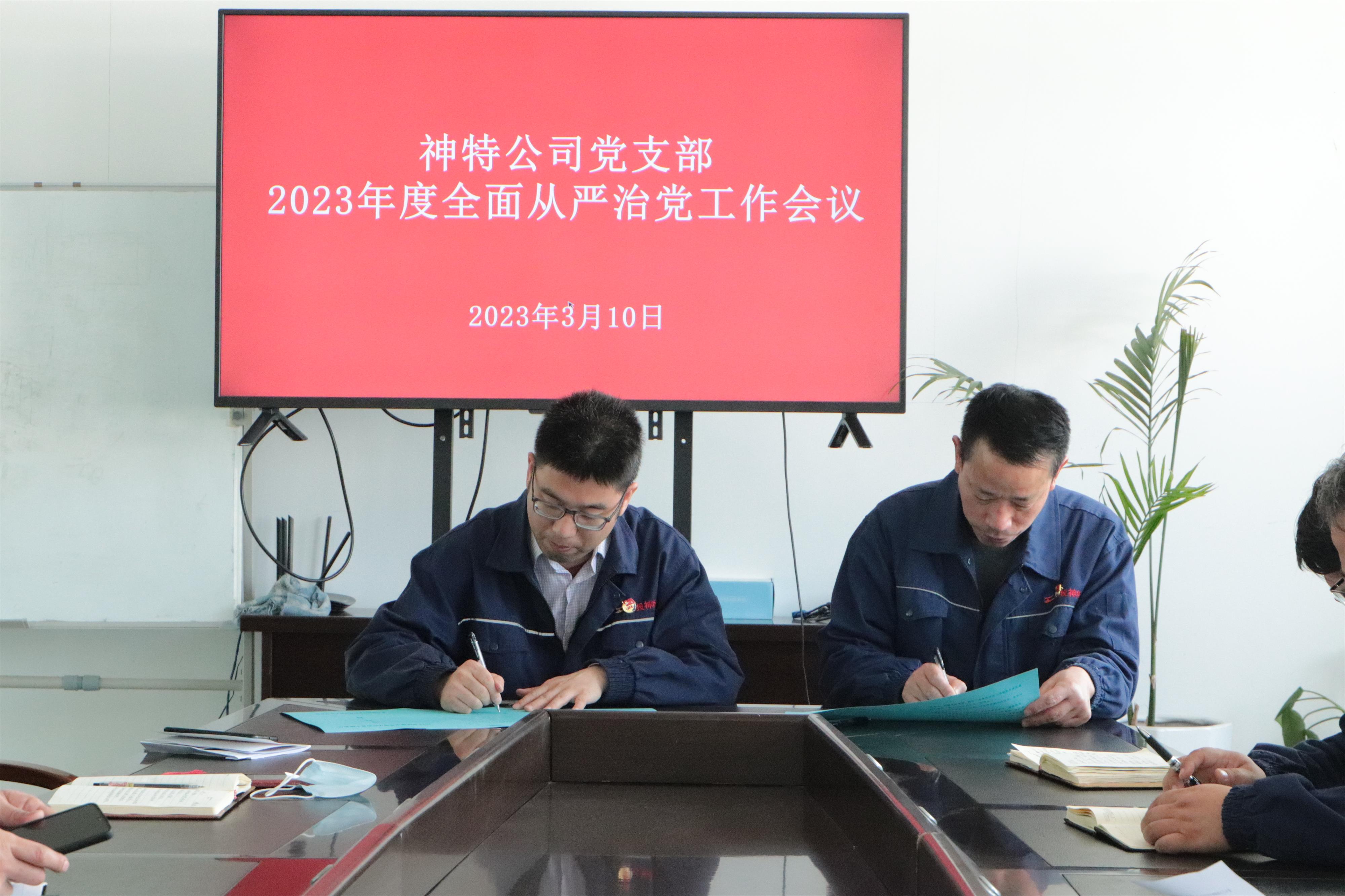 会上,公司党支部副书记、纪检委员、工会主席王爽芳作题为《全面贯彻二十大精神,精准护航高质量发展,为推进全面从严治党提供坚强纪律保障》的报告,要求全体党员以习近平新时代中国特色社会主义思想为指导,全面贯彻落实党的二十大精神,坚决贯彻党的自我革命战略部署和全面从严治党战略方针,深入开展党风廉政建设和反腐败斗争,推进新时代新征程纪检监察工作高质量发展,持续发挥监督保障执行、促进完善发展作用,为神特公司改革发展、攻坚突破提供坚强保障。