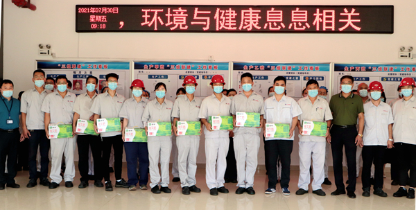 刘承志主席为生产一线员工送来牛奶、绿豆、白糖、大米等防暑降温慰问品,细心叮嘱要认真做好防暑降温和疫情防控工作,确保平安度过夏天。(神特宣)