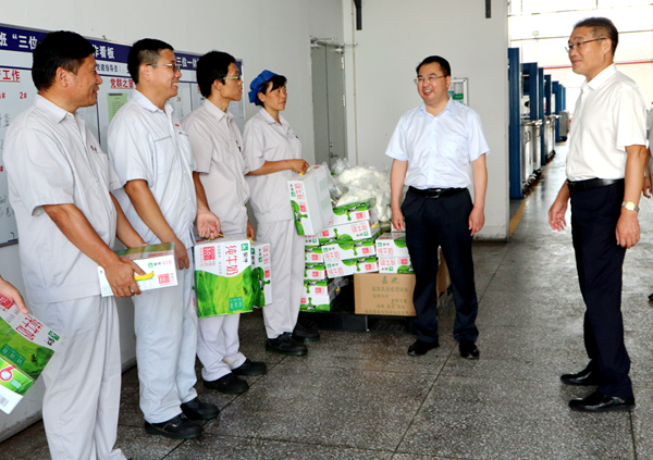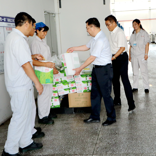 8月1日上午,荣耀手机官网入口公司党委副书记戴鸿鸣、工会主席刘承志来我公司慰问生产一线员工,为辛勤工作的员工送来牛奶、绿豆等防暑降温慰问品。公司党支部书记、副董事长邹德兵,总经理韩立新等多位领导陪同。