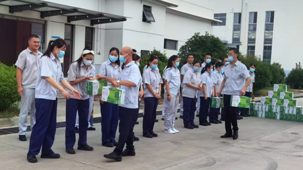 7月19日下午,公司党支部书记、总经理韩立新代表公司开展夏季送清凉活动,为全体职工送上组织的关怀和贴心准备的牛奶等防暑降温慰问品,给炎热的夏季带来一缕清风,进一步激发了职工的工作热情。(神特宣)