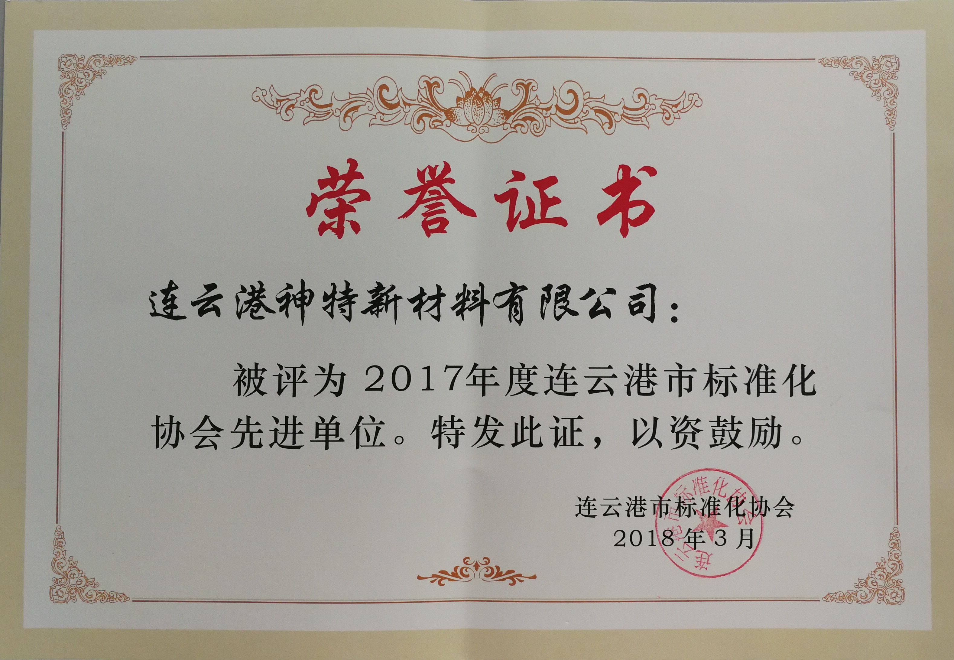 4月2日,神特公司参加由市标准化协会组织的2018年会员大会,被批准为连云港市标准化协会团体会员单位,并被评为2017年度连云港市标准化协会先进单位。