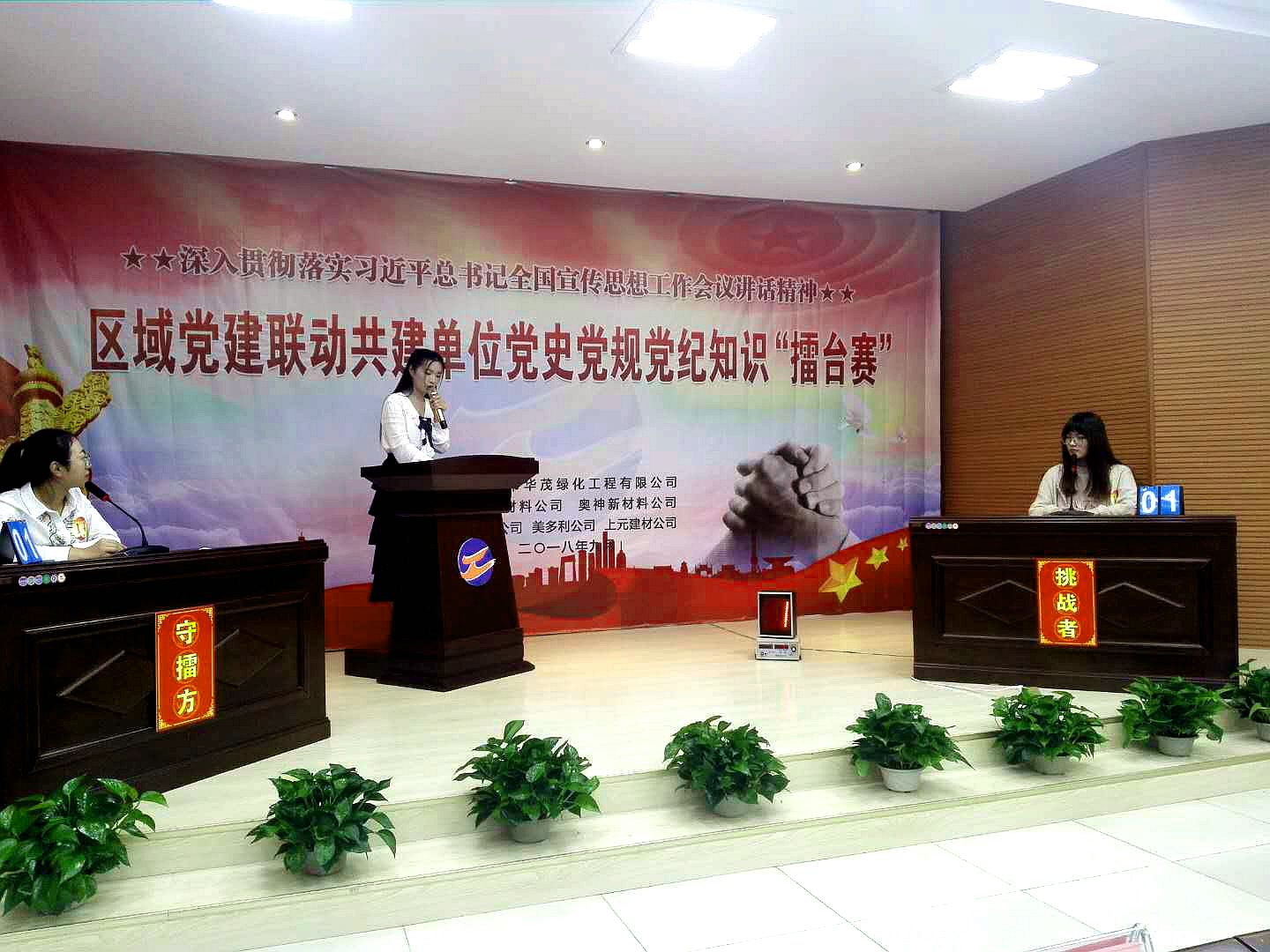 近日,华茂公司邀请神特公司、奥神新材料公司等5家区域党建联动共建单位,进行党史党规党纪知识“擂台赛”。我公司积极准备,派出员工何晓璐、李筠涵参加比赛。本次活动拉开了区域党建联动共建的序幕,促进了兄弟单位间的资源共享、融合互动,为下一步工作推进打下了良好基础。
