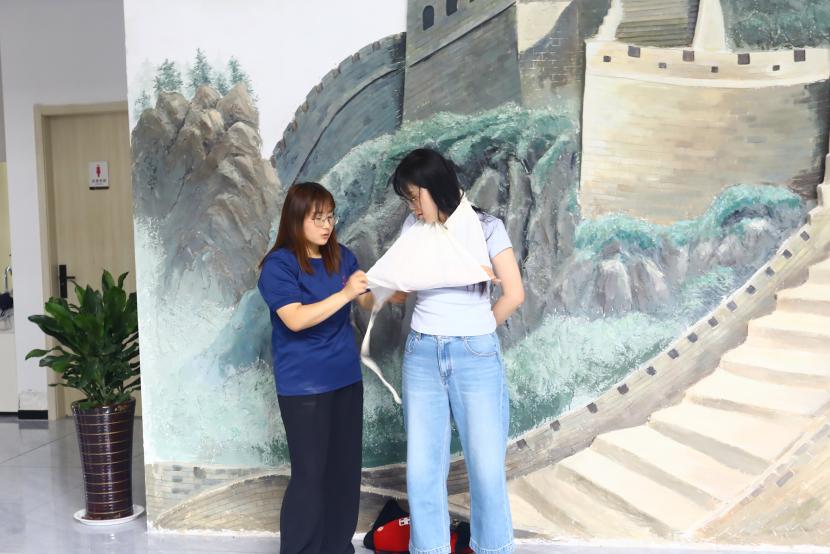 培训中,连云港德安消防职业培训学校资深教员王彦结合多年的工作经验和实际案例,细致地向大家开展了消防理论培训,结合室内外的消防设施的作用,系统讲解了整个建筑消防系统的工作流程,介绍了应急疏散逃生的正确方法步骤;现场教学了消防护具穿戴、自救呼吸器使用;演示了简易担架制作、简易包扎;着重示范了心肺复苏以及海姆立克急救等。通过生动形象地讲解,全体员工对消防安全知识有了更全面、更深入地了解。