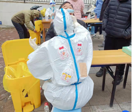 12日 7点集合,领装备,鉴于昨天的教训,早上没喝水,吃了两口饭,要不大白服就浪费了。出了点意外,排小区把我们小区给忘了,没医生来支援,就三个医生,三个点,三张台,队伍排的那叫一个长。“请大家把健康码打开,保持一米距离,戴好口罩!”这是我上午说的最多的几句话。咱们赣榆的医生非常辛苦,累了一上午,下午还要采黄码,扫楼,向他们致敬!中午刚领盒饭就通知徐州支援的医生到了,来了十几个,扒拉两口饭,开始穿装备。第七轮结束,感觉人都废了,浑身湿透,嗓子疼,不想动!