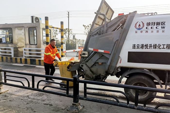 他叫罗海军,悦升环卫分公司垃圾清运班的班长。该班组共有两台垃圾清运车、9名工作人员,主要承接新区内外38家企事业单位的垃圾清运业务,负责65个垃圾集中点的垃圾清运工作,每天清掏果皮箱近200个,同步负责装运由道路保洁工人捡拾定点摆放在路边近400包袋装垃圾,清理垃圾桶600余个,日平均清运各类垃圾达30余吨。