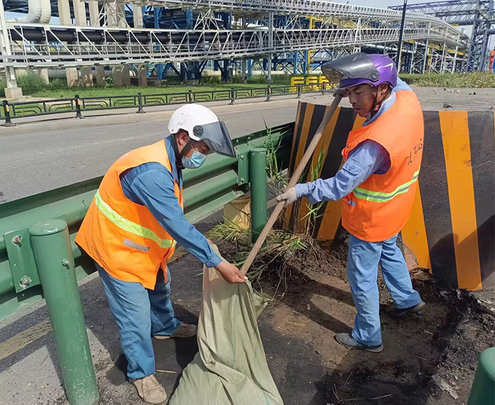 示范引领处处呈现。节前环境大治理工作开展以来,全公司下掀起“大干15天、再创新佳绩”劳动竞赛活动。道路一线党员示范作用有力得以彰显。党员张学军、龚飞、姚功、陈小军等同志工作中争先恐后,脏活累活冲锋在前,呈现出热火朝天的繁忙工作景象。园区班组、女子班组突击清理道路两边的杂草、岔路口泥土,大型车辆抛洒石子。清理路面达3000多米长,清理打包深秋梧桐落叶达100多袋,确保行车安全与环境治理同步进行。