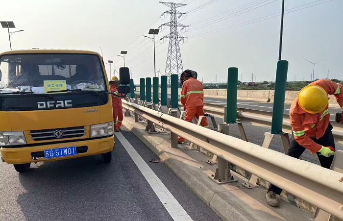 9月11日下午,市政分公司开展桥梁中分带缺损防眩板专项维修行动,工作人员加班加点,携手奋战,完成维修任务,排除安全隐患,保障过往车辆行驶安全。