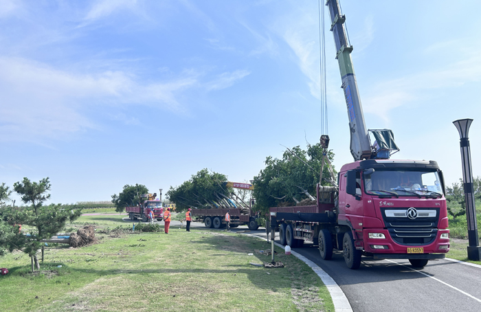 按照徐圩城建工作要求,绿化分公司在228国道进行431颗栾树的移植。该分公司按照工程要求制定工作计划,合理部署、分工明确、相互配合。施工现场,工作人员摆好安全锥、戴好安全帽,操作着机械设备,尽管天气炎热,大家也毫无怨言,他们用汗水提升新区“颜值”。