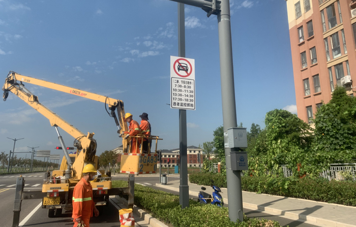 连日来,市政分公司抢维修应急班组针对突发情况,对幸福家园路段标志牌开展应急抢修工作。整个过程中,技术人员反应迅速,科学应对,严格按照安全操作规程进行作业,及时将标志牌维修到位,确保该路段交通行驶安全。